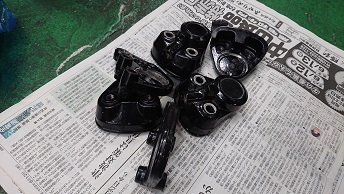 202106/30 Z2! これは一体? メンテナンス・大将商会 0 6月29日(火) Z2!! 段々イイ感じになってきた! メーターにライトに!! フロントキャリパーも仕上げていかないといけないが・・・・ 元々このZ2のパーツを塗ってる塗料は何???? リバーがなかなか効かないわwww マスターとボルトはブラスト準備。。。 リバー2回でこれだけしか剥がれない・・・ 塗料というか樹脂のような・・・・ スクレーパーを使い剝ぎ取り、リバー3回でやっとここまで・・・・ 後1回やらないと・・・・・最高に嫌な作業・・・・ これでは、まだブラストも効かないだろうし・・・・・ マスターは純正をボーリングして5/8に加工しないと・・・・ また明日コンテナから探すとします。。。。 疲れた。。。 [19回]
