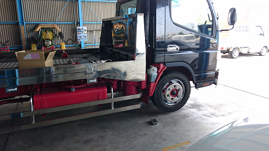 201808/22 自家用積載車・・・メッキ! メンテナンス・大将商会 0 8月11日(土) この度制作している積載車にメッキパーツ装着していきます。 キャビン・・・装着前 装着後!! さぁーメッキホイール取付に行ってきます!! 大分、理想に近づいてきました! [7回]PR