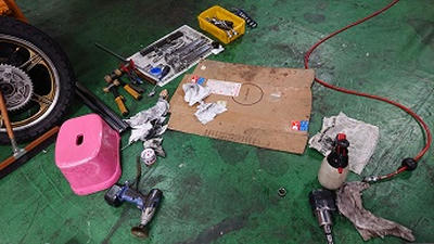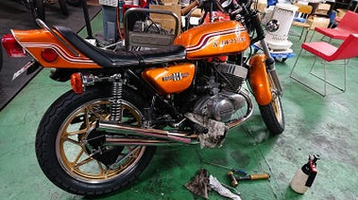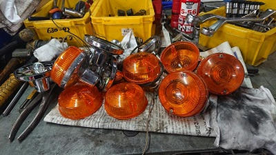 202101/27 車検に納車に!! メンテナンス・大将商会 0 1月25日(月) 朝市より車検場へ! 私の特等席に駐車!!(笑) Z1に娘のアウディです!! 2台とも問題無くすんなり合格! ちょっと帰ってZ1の試乗してみますか! ちょっと陸自に用事があったので走ってきましたが、問題無さそうです! けど・・・・速い。。。。 この後、無事に納車! オーナーは、徳島の総合格闘技の選手です!! ドツかれんように丁寧に対応しないと。。。。(笑) 気を付けて!!! ちょっと寂しいな。。。。 さぁー作業しますよ! キャブのOHする準備で、分解しておきます! ウィンカーもイイものをより、磨き上げ準備できました! ドラムパネルと、チェーンケースの塗装も完了!!! 待ちに待った、東京鉄管のマフラーが届きましたが・・・・ 今日は、良く動いた一日だったわwwww [13回]