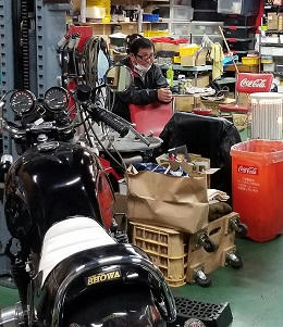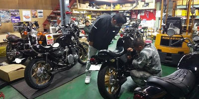 202012/02 本日も朝から・・・! メンテナンス・大将商会 0 11月30日(月) きょう午前中は、脳梗塞で少し身体に障害が残った父親を、運転免許センターの適性検査に連れていきます! まだまだ、頑張ってリハビリしないと、普通には運転できないような感じです・・・・。 頑張れオヤジ! 親父と昼食を終え、時間あるので、Z1000LTDの国内新規登録でも行ってくることにします! 何の問題も無く、すんなり合格!(笑) ん・・・・ まだ時間あるので、連長のZ2も車検しておきます! しかし、ガレージに帰り車両チェックしていると、ライト(LED)の切り代わりの調子が悪い。。。。。 他にも、車検仕様に戻して・・・・取り外してあるライトに、ライトリレーキットを取り付け出発! 再び陸自に! こちらもすんなり合格! 本日、予定していなかった、車検2台で来てよかった! またまた夕方になると・・・人・人・人。。。。 連長の車両をもとの仕様に戻しているのに・・・・ 次々来る来る。。。。 画像にはないですが、ウルフ・乃一も来てました。。。。 車検に持ってきた副長の単車が調子悪そうだ。。。。 バッテリーが急に弱くなったみたい。。。 電圧を計ると10Vぐらい・・・・ お亡くなりになったか? 一応分解してチェックしてみます。 原因がわかりました・・・・・! 早速修理しておきます! 原因がわかったので、副長のご満悦。。。。 あとは、自分でしなさい! 次の順番を待つM社長・・・ しかし、こんなイラン事ばかりしたがる。。。。 これは、連長に叱られますね(笑) この後、M社長のしょうもない修理して本日終了。。。。 また、作業進めれなかった。。。。。 ※先日の答え 後ろ側に、プライベートで来てる連長がいます(笑) [15回]