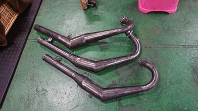 202010/19 ちょっと…フラフラ。。。 メンテナンス・大将商会 0 10月18日(日) 夜遅かったけど・・・・起きれてよかった! 朝8時にガレージを出発し、香川県豊浜へ! 愛媛の知り合いのM本さん・メンバーまぁー君と待ち合わせ、ちょっと見学に! 残念ながら縁が無かったという事で。。。。 でも、良かったですね!M本さん!! この後、ガレージに帰ってきたが・・・・・ やはり歳のせいか身体が・・・・・・ 夕方3時まで休憩し、それより作業開始です! ガレージに来ると同時に、待ち構えていたようにドンドンやってくる。。。。。 副長とM社長!! S内は、GSX400Fのマフラーの確認・・・ が、私は私の作業進めます!!(笑) マフラーの色剥ぎ作業。。。。 H2用のタロッティー管!! 3本あるので、陽のあるうちに済ませたい。。。。 どうにか、3本色剥き完了!! すると、またまた同級生が、昔乗っていたGPZ400Fを購入し、見せに来たよ! 400ブームか???? やっぱり身体が・・・・さぁー今日は帰ります。。。。 [17回]