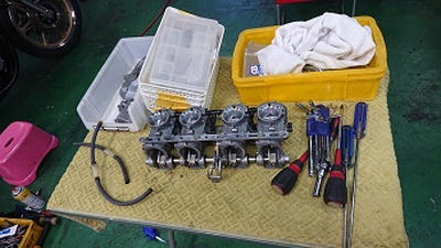 202008/18 そろそろ完成! メンテナンス・大将商会 0 8月17日(月) まずは、昨日のBBQの最終のお片付け!! 机や椅子を片付け、BBQコンロも綺麗に洗い、床も流して完了!! さぁー作業に移ります!! 直幸のZ2に取り付ける、CR29組んでいきます! 副長もやってきて、ヘッドの打ち殺しの部分からオイルが漏れてくると、泣いてきた。。。。。 まずは試しに、ポンチングして様子見てみることに!! いけるとイイが・・・・。 キャブ完成! 残すは、クラッチ盤セットに、大将オイルクーラーですね!(笑) またまた1位頂きましたが・・・・ 皆さん、GSX400Fのパーツよろしくお願いします!! 有れば、連絡くださいね!! [16回]