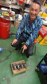 202003/13 ちょっと安心・・・ メンテナンス・大将商会 0 3月12日(木) 朝から・・・・ ここ最近、右手にしびれがくる事が再々あり・・・・・ ちょっと気になったので病院嫌いの私でも不安になり、MRIとってきました。 脳梗塞?? 検査結果は、脳や、血管には異状ないとの事。 疲労、神経性の物だと言われました。。。。。 けど、心配ないこと分かったので、本日もバリバリやっていきます!! 夕方副長がやってきて・・・ 今、FXを触ってて、キャブがおかしいとの事で相談に来た。。。 この間の引っ越しの時に、FXのキャブ1基あるの確認していたので出してやると、最高のご満悦。。。 私は、S20のネジが再メッキ出来上がってきたので、取付けれるパーツ取付けていきます。 そうこうしていると、次の整備車輛がやって来ました。。。。 順番にこなしていきます。。。。。 マフラーの修繕です! 後日、後輩の出張頼みます。 以前私が所有していたヨンメリ・・・・カッコいい(笑) ガレージでは、いつもと同様、井戸端会議しています。。。。。 [15回]PR