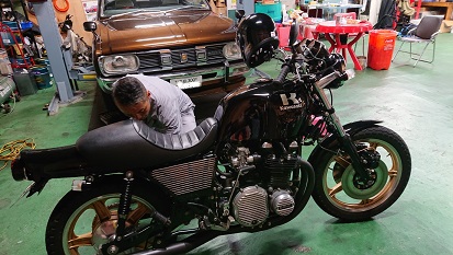 201909/30 ヤル気スイッチ・・・ON メンテナンス・大将商会 0 9月29日(日) 今日は昼までダラダラして~ 昼からモリモが、蛍光灯の追加しに来てくれるので、ガレージへ!! 私の為に作業してくれている姿を見て、私も・・・ 作業!! ヤル気スイッチ ON!! 先日から預かってる、ケンケンZ2!! エンジンのオイル漏れは後日!ってことにしていましたが、スイッチONになったので作業します!! ピストンは、真っ黒黒助(笑) ガスケット剥ぎをして・・・・ ピストンも磨きましたよ!! ヘッド・シリンダーのGK・PK剥ぎも終了! こちらは、明日組上げます!! これからは、230のブレーキの仕上げに!! ブレーキオイル入れてのエアー抜き!! サイドブレーキの調整も大丈夫みたいなので、リフトに上げたまま、一回連長に確認してもらう事にします! さぁーさぁー続いて、副長のMJ交換・・・ 数回交換を繰り返し、やっと、満足域に! ニコニコで、乗って帰りました!! 今日は、昼から頑張ったよ!! お疲れ・・・自分(笑) [15回]