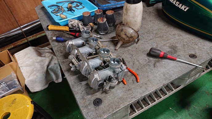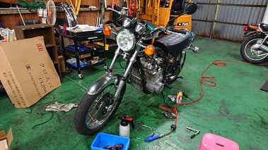 202104/26 KZ900も・・・・ メンテナンス・大将商会 0 4月25日(日) 新たに2台入荷ですが・・・・ KZ900もかなりの高騰。。。。。 しかも、Z1は無いし・・・・。 ちょっとお昼に、M社長のお蕎麦頂いてきました! そして、ガレージに戻り・・・・副長の部下がKZ900の購入決定!! とりあえず、GS750Eも含め一気に新規登録済ませるため、早速キャブのOHを! 茶色のKZ900は登録完了後、仕様変更及びレストア依頼の為、これまた時間かかる。。。。 漬け置きして、これまたパーツ入荷を待たなければいけない。。。。 続いて、M本さんより仕上げを依頼されている車両のフレームですが、ちょっと気になる箇所を塗装剥離し、チェック! 歪みなど直すため板金へ入れることにします!! 今は、Z2(Z750RS)は希少だから! 車両は高いし、パーツも高い。。。 作業は忙しいし、身体がついていかないわ。。。。。 時間が欲しい!!癒しが欲しい!!! [13回]