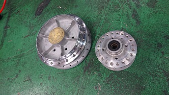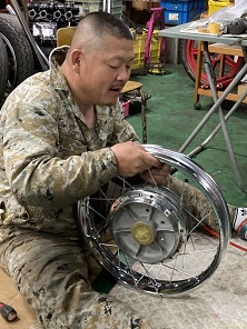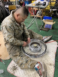 202104/30 する事有り過ぎ・・・・。 メンテナンス・大将商会 0 4月27日(火) キャブも3機パーツ入荷したので仕上がりました。。。。 新品のスポーク&リムを組み立てるため、ストックのハブをブラストして綺麗にしていきます! 磨きも完了!! 後は組み込み、バランス取り!! 今日も監督ご苦労様です。。。。(笑) ※TMRのキャブを取り付けてもらうためにタイミング伺って、単車出来ている社長。。。今のところは無理です。。。 [13回]