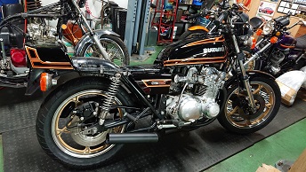 202104/30 SHOWAの日ですが・・・ メンテナンス・大将商会 0 4月29日(木) 生憎の雨・・・・ 関係無く、作業しますが・・・・。 本日は、GS750Eを進めていきます!! 外装を取り付け、キャブも取付、今日、エンジン始動させます!! インシュレーターも本日やっと純正品ゲットです!! 調子良くエンジン始動!! 異音も無いしイイ感じです! 外装付ければ、まったく雰囲気変わるわ!! かなりいい感じです!! だた、タンクのコックが気になる・・・もちろん分解して確認しましたが。。。 後、シートをゲットしなければ・・・・・。 続いて、国内新規に向け、車両整備しておきます! まずは、グリーンのKZ900! オイル交換など済ませ、ついでにマフラーも交換しちゃいました! オイルを入れる前に、ダイナモのオイル漏れを対応しないといけませんが。。。。 明日、その修理と、キャブを取り付けエンジン始動させます!! 問題無ければイイけど。。。 今日はちょっと早じまいして、家族で食事に! 少将帰宅してるので!! また、明日から頑張らないと!!! [16回]PR