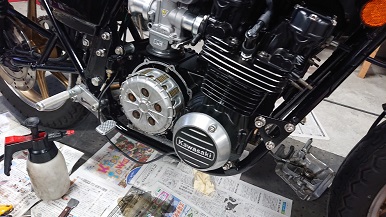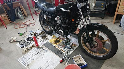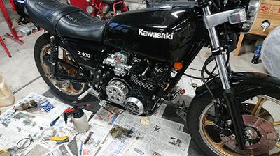 201906/28 何故…毎日することあるのか。。。 メンテナンス・大将商会 0 6月23日(日) 今日は・・・・ ブタケツ・・・・ やっぱり先にS31Zに、ちょっと工夫付け加えておきます。 油温が高い温度になるので、オイルクーラーを追加してみます。 けど、もともとオイルクーラーはつけているけど、走らないと風が当たらない。。。 なので、オイルクーラーを繋いているホースの途中に小型のオイルクーラーを割り込みさせてみます。 オートバイ用のオイルクーラー!! エンジンファンの風が良く当たるところに設置してみました。 油圧も上げてあるので、大丈夫でしょ! これで、少しでも冷えてくれたら嬉しいな。。。。 ブタケツは、サーモスタット交換したいけど、後日に! まず、知り合いのところへ、S31Zのブレーキのエアー抜きしてきます。 リフトが、330で使えないので。。。。 無事、エアー抜き終わり・・・・ 知り合いの所有するZ400FXのセルが滑るとの事・・・・。 ワンウェイだろうな。。。 けど、Z400FXは、Z1Z2みたいに簡単にいかない。。。。 修理を依頼したいと言われたが・・・・・・ 預かると、色々作業が入るといつになるか・・・・ 近日にツーリングに行くというので・・・・ 急遽、知り合いの工場で、オペすることにしました。。。 イヤイヤ、なかなか手間のかかる作業よ!! なかなかヤル気スイッチ入らないよね・・・・ 知らない人のであれば、間違いなく断ってると思うわ!! 頑張って、やってみますか!! 取り出し、清掃して・・・・ PK/GK剥がして。。。。 取付して・・・・ セル回すと、元気よく回り出した! よかった!! スーパーヤル気スイッチ入って(笑) ちょっと・・・疲れたわ。。。。 [13回]PR