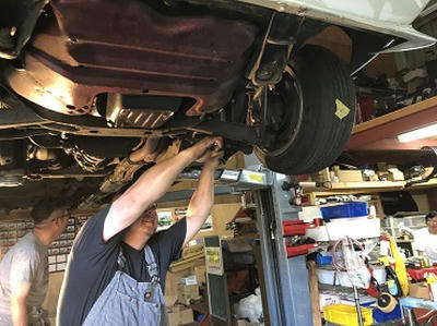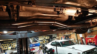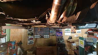 201905/30 ブタケツ・・・マフラー加工 メンテナンス・大将商会 0 5月23日(木) 今日は、預かりのブタケツのマフラー加工してきました。 中間サイレンサーを取り除き、出来るだけ車体に張り付かせることにします! 無事作業を終え、ガレージに帰ってきて、リフトUP!! 補修塗装して・・・・ ジョイント部分を保護しておきました! イイ感じにマフラーが持ち上げられましたが、気になる点が・・・・ タコ足が低すぎるので、これは買い換えないといけないかな。。。。 オーナーに説明しておかないと。。。 後は、これまた希少なドアバイザー取付ければ作業終了です! [10回]