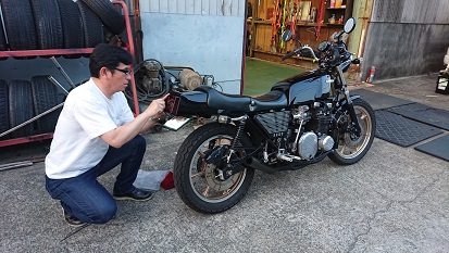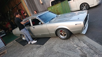 201905/30 ローレル 納車! メンテナンス・大将商会 0 5月26日(日) 昨日の夕方、岩手県より帰ってきて落ち着く間もなく。。。。 今日は、長い時間預かっていた(2週間)ローレルの納車です!! ローレル引き取り前に、Z400FXのエンジンを積んでおくことにします!! 作業を進めたいのですが、引き取りに来たので、ちょっと中断します。 ローレルの車高の調整・車高調の扱い方を説明し、同行してきたまぁー君と共に頑張っています! 車体からはみ出たホイールを収める前に、昼食してきます。 今日は、いつものラーメン屋さんや焼きそば屋さんと違い、うちの家族が気に入ってるラーメン屋さんへ行ってきました。 「可成りや」 さぁー最終仕上げに入りますか!! フロント良し!! リア良し! 全体の車高を調整し・・・・ なかなかイイ感じに仕上がりました!! 続いて、地元の同級生のヨンメリの足回りの調整です。。。 キャンバーキツくて内べりが酷い。。。。 「こりゃ駄目だ!!」 キャンバーを立てずに内べりを少し解消させることにします。 この日訪れていたみんなとの一息…この瞬間が楽しんだよ!! ケンケン!! 楽しみながら帰ってくださいよ!! 皆が帰った後に、コソコソと・・・・・ テールレンズ交換してます…自分で!! 関心関心(笑) 私も、少しだけ作業進めておきます! ちょっと気になった、オイルクーラーの取り出し口を作り直してやらないと、ホースがものすごく無理してる。。。 この車両も、あと少し! [13回]