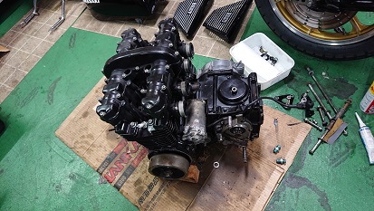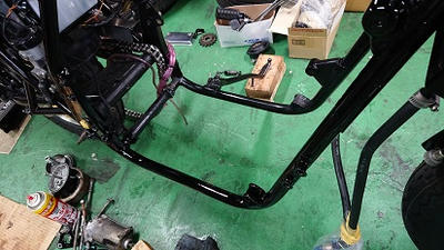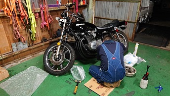 201905/22 ドンドン進めていくぞ! メンテナンス・大将商会 1 5月21日(火) Z400FXのパーツも入手し、どんどん進めていきます! エンジンに取り掛かる前に、エンジン下ろすときに、手が滑りフレームが少し傷が入ったので、私自身気に入らず・・・・補修塗りしました!! もともと、Oリングなど入っていなかったエンジン・・・・(笑) 組立て言ってると気づくと思うけどな。。。。(笑) 私は、ちゃんと入れておきます!! 当たり前だけど。 エンジン完成です!! クランクシャフトは、やさしく優しく磨き込んだので、大丈夫だと思うけど。。。。。 新Z1オーナーに指導!! ダイナモからオイル漏れしているのを、自分でやらせてみます!!! バイク好きな子だからちょっと指導すれば自分で出来るので感心です!! ここのところ、バタバタで、自分のことが全然できない。。。。 あ~ストレスストレス・・・・。 [15回]