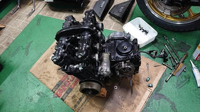201905/20 おいおいまたかよ・・・・ SHOWA 0 5月19日(日) 昨日、元メンバーの知人の単車の修理の相談が・・・・ 車輛は、Z400FX。。。 嫌いじゃない。。(笑) このFXはカッコいい!! 50歳前になっても、BEETテールがカッコいい!!なんて、 私、おかしいでしょうか?? FXは、このスタイル私的に100点です!! 症状は、エンジンクランクシール左右からオイル漏れしているそうだ。 が!!! そのシール交換は、すぐ出来るもんではなく、凄く凄く手間のかかる作業!! 本当ならお断りをしたいけど・・・・ 困ってる顔を見ると受けてしまった・・・・(ちょっとカッコいいから。笑) 少し作業準備するつもりが・・・・ ここまでやってしまった。。。。 どうやらシールの寿命というより、クランクシャフトに問題ありそうです。 シールの当たり面が荒れすぎ・・・・ 少し面を整えてみますが、 「また漏れ出した!」 などなれば嫌な話になるので、本人に確認してもらい、説明することにします。。。 たかがシールなんて千円ぐらい・・・ なのにこの作業。。。。 PK・GK剥ぎが大変。。。。 ヤレヤレです。。。。 [12回]