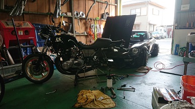 201905/08 管理人Z1・・・Ⅿ社長! メンテナンス・大将商会 0 4月18日(木) 管理人のマフラーの不補修も出来、まだ、塗装は出来ていないけど、車検するためのタイヤ交換・ハンドル交換しておきます。 やっと引き取りに来たぞ‥‥。 Ⅿ社長!! 良いバイクなのに・・・もっと乗ってやってよ。。。。(涙) [10回]