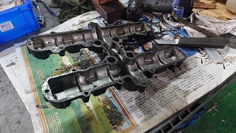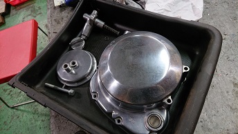 202102/10 Z400FX・・・エンジン編 メンテナンス・大将商会 0 2月9日(火) 昨日分解したZ400FXエンジン! 分解や、組付けなどそれほど大変ではないけど、下準備が大変・・・。 特に、PK剥ぎ・・・ケース内・各種パーツのオイル汚れの掃除など。。。。 ミッションは脱脂せず保管! クランクケースロアなど、各パーツの洗浄も徐々に完了! なかなか手強いヘッドカバー。。。。 ベースGKやサイドのPK剥ぎ完了!! 明日ケース内の洗浄します! そして、オイルパンも。。。。。。 こういう作業が一番手間かかるし大変なんだよ。。。。。 [15回]