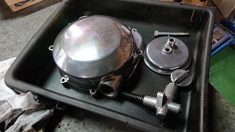 202102/12 一番辛いが・・・・ メンテナンス・大将商会 0 2月10日(水) 本日も昨日に続いて、洗浄などの作業進めていきます。 エンジンに付属するカバーも磨いておきます! オイルパンも、この通り綺麗に洗浄完了しました! 単純な作業ですが、この作業が大変です。。。。。 [13回]