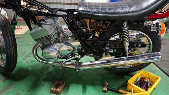 202102/17 本日片付けからの・・・・ メンテナンス・大将商会 0 2月15日(月) 本日朝から、昨日のBBQの片付け・・・・・。 テーブルや椅子など第2倉庫へ運び・・・・ 近所の西〇君も手伝いに来てくれ助かった! なんでもそうだけど、最後の片付けが一番大変じゃ! ジッとしていられない私なので、さっそく作業! メンバー乃一のSS350にキャブを装着! 調子よければいいけど・・・何分何年も放置してあった車両だけに・・・さてどうなるか??? ですが・・・・このSS350の作業はここまでとして・・・・ 昨日のゴミの処分に来てくれたM社長が、昼食に誘ってくれたので行ってきました!! 近所のうどんや!! ランチがなかなかイケるんだよ!! M社長ご馳走様でした!! そして、ガレージに帰り、先日届いたSS750のフレーム。。。。 見ると組みたくなるのが私なんです!!!(笑) フレームを出して! 早速スイングアームに強化ブッシュを組込み! リア回り組付けていきます! ホイールはハヤシ!! ショックは、ウィングコニー!! 皆さん見る人が見れば、まだ持ってる!!って思ってる人が多いと思いますが、もぉー無いですから!!(笑) フロント回りもやっていきます!! このSS750は、Wディスク仕様です!! 今、高騰しているキャリパー・・・・ストックあってよかった!!(笑) まだまだ進めたいのですが、ネジ類の不足があり、今日はここまでにしておきます!! [14回]PR
