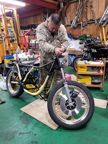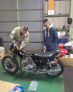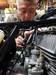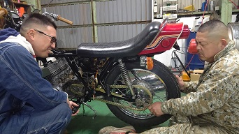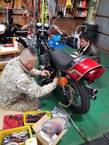 202102/12 ちょっとのつもりが・・・・ メンテナンス・大将商会 0 2月11日(祝木) 実は、本日私の誕生日!! けど、歳は取りたくないよ。。。。。 東京鉄管さんより再び届いたマフラーをZ2装着し、SS350のコンデンサーとポイント付けて、家族と食事に行こうと思っていたのですが・・・・・ SS350オーナー乃一より連絡があり、注文してあったパーツ入荷したので持ってくるとのこと。。。。 嫌な予感。。。。 暖を取って、見守られながら・・・・ 作業・・・進めることに。。。。 撮影はイイから、手の持ってるパーツかしてよ!!! キャブまで取り付けしたら終わる予定でしたが、私が初歩的なミスで、再度キャブ調整して取り付けることに。。。。 本日の作業は終了!! 私の誕生日は、、、やっぱり作業で終わった。。。。 Z2にマフラー付けれなかった。。。。。 (おまけ) 先日、ℤ1を購入してくれたオーナー!! 有るところにはあるんだね!! 早速純正プレスタンク手に入れたみたい!! それも、初期18Lタンクですよ!! エンブレム穴スムージングされていますが、掘り出せば出てくるでしょう!! おめでとう!! [18回]