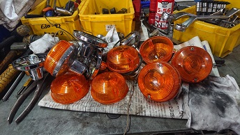 202101/27 750SS準備! メンテナンス・大将商会 0 1月23日(土) どうせするならで、750SSのインナーチューブ新品を購入し装着完了! 1代目の750SSのキックシャフトのシールからオイルが出ているので、直しておきます! これで、この750SSのオイル漏れはなくなったと思うが・・・・ マフラーからのオイルは止めることができない。。。。 いつ、ゆっくり乗ることが出来るのか・・・まだ観賞用状態。。。 2代目の750SSに装着する純正部品を出してきて振り分けします。 2代目も勿論ノーマルウィンカーです! 2代目は、Wディスク仕様にするので、キャリパーも二つ!! カバー類も磨き・・・・ ライトは、引き出しにしまっておいたライトレンズを装着! まだまだ準備しておくことがある。。。。 フレームが返ってくるまでには揃えておきたいわ! [12回]