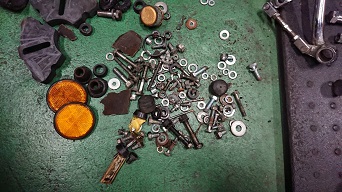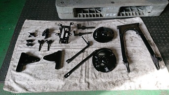 202101/05 年内にやっておきたい! メンテナンス・大将商会 0 12月28日(月) 今日は、非常に天気が良いし、気温も高い! 昼からSS350のフレーム塗装やっておきます! ガンを振り続けて約2時間・・・・・さすがに疲れた。。。。 年内に塗っておきたかったので、良かった!! フレームを塗り終え、Z1000の最終チェックしてるとちょっと気になるところがあったので直しておきます! 完了!! 慣らし運転行きたいけど、なかなか行くタイミングが・・・・。 約500kmは慣らしたいんだけど。。。。。 そろそろ本気の販売開始準備完了です! [11回]