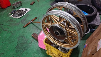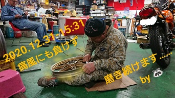 202101/08 大晦日・・・・ SHOWA 0 12月31日(木) やっぱり大晦日んて関係無い・・・よね(笑) SS350のキャブを漬け込みしてたけど、汚れがひどく、まだしばらくかかるかな。。。。 SS350のクランクケースアッパーの洗浄しておきます。 本当なら、このガレージに今年一年感謝の意を示し、年を越すのが普通ですが。。。。。 今度は、自分用に使うセブンスターホイールを出してきて、使えるようにしておく準備しておきます。 何年間放置してあったのかわからない位経つセブンスターホイール! そこへ暇なM社長&西〇君も登場。。。。 このまま帰ってもすることないので、ちょっと磨くことにします! そぉー痛風の症状が出てるんです。。。。 けど、頑張ってやってよかった! 綺麗に磨けたので、このホイールを家に持ち帰り、マスキングすることにします! マスキングしながら年越しになるでしょ!!(笑) 2020年は、セブンスターマスキングで幕締めです。。。(笑) 皆さん、良いお年を・・・・。 [18回]