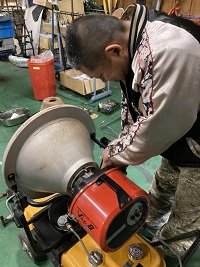 202101/14 2021年 今年もよろしくお願いいたします。 メンテナンス・大将商会 0 1月1日(2021 元旦) 皆さん、明けましておめでとうございます。 今年も、私の作業日報・・・・頑張ります! 早速ですが、私・・・元旦なんて関係ないです。(笑) 昨日大晦日にマスキング作業を終えたホイールの塗装やっておきます。 綺麗に復活しました! タイヤも組み込み、ベアリングも打ち込みいつでも使用可能になりました! 年末年始と冷え込むということなので、ジェットヒーターを出すことにしましたが、2年間放置してあったら点火しない。。。。。 初めてしますが、構造は簡単なもんなんで、分解してチェックしてみます。 画像には無いですが、燃料ポンプも分解しチェック!点火軸など綺麗に磨きこれで完璧でしょ!! いざ点火!!! 無事に点火してくれました!! これで寒いガレージの中も暖かく過ごせるでしょう!! けど・・・・燃費が悪い。。。。 [13回]PR