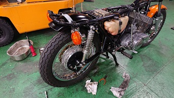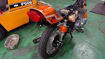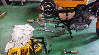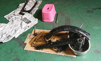 202012/14 750ss リア回り開始! メンテナンス・大将商会 0 12月12日(土) 本日は、気合を入れリア回り集中で作業進めていきます! くすんでる、リア回りを甦らせます! 剥離剤で色剥ぎしてからのブラスト! 剥離剤で色剥ぎしたパーツを水洗いして・・・・・ 続いてはブラスト・・・昼間のブラストは、キャビネット内が見ずらいので、ほっかぶりしての作業です。 朝からの作業ですが、何気なくしているようなこの作業・・・・なかなか時間かかり手間がかかる。。。。。 すっかり外も暗くなってしまった。。。。。 さぁーガンガン塗装していきます!! ようやく塗装完了。。。。 朝9時から夜の23時までの作業は、さすがに疲れた。。。。 ブタケツのクラッチマスターの交換もしたかったけど、それどころでなかったわwww 疲れていますが、明日にします! [16回]