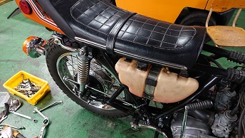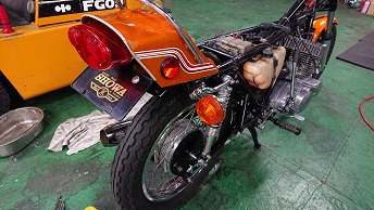 202012/15 750ssリア回り! メンテナンス・大将商会 0 12月14日(月) 急遽、車検依頼きた車のライト磨きから始めます! 画像ではわかりにくいですが、かなり黄ばんでます。。。。 透明感取り戻しました! バフがこんなに汚れてしまってるわwww 完成です! さぁー750SSに取り掛かります! 塗装したパーツ、磨きを入れたパーツ整っていますので、一気に組み込んでいきます! 綺麗になったスイングアームがイイね! インナーフェンダーは鉄製で、少し艶を抑えての塗装がイイ味出てる! テールカウル装着し、テールランプブラケットと一体のナンバーステーの角度もイイ感じになりました! なぜか以前より持っていた750SSのチェーンケースがここにきて役立つことになるとわ(笑) ちょっと・・・・M社長邪魔なんですけど。。。。 車体が小さく見える・・・・社長がデカいの?車体が小さいの? リア回り完成です! 完成間近になってきたぞ!! [16回]PR