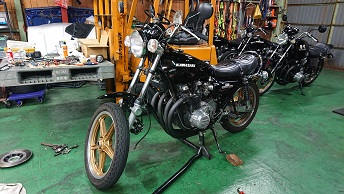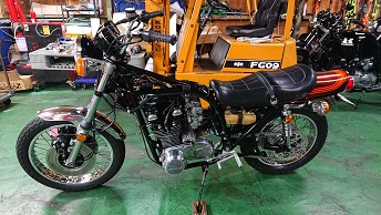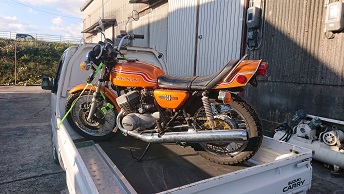 202012/02 今後の資料・・・・ メンテナンス・大将商会 0 11月29日(日) イイ肉の日ですが、肉食べていません。。。。。 朝より、軽トラのオイル交換を済ませ・・・・ 高速に乗り岡山へ!!! 流石に軽トラで高速は疲れる。。。。 壊れると大変なので、きっちり法定速度でのドライブです!(笑) イイ天気です! ブタケツや、S31Zより安心感あります(笑) 岡山には・・・・ 今後の勉強のため、オリジナルに近いH2(750ss)を取りに行ってきました。 H2に関しては、全然わからないので(笑) で、今後の標本H2です! また、ゆっくり勉強します!! 時間もあるので、Z2少し進めておきます! フロントブレーキ回りも完成! すぷろけかばーも取り付け、セルモーターカバーも取り付け、段々出来てきましたよ! フロントフェンダーも、リアフェンダーと同様LTD純正フェンダーです! フロント・リア共に程度がイイので良かった! 今日は、ここまでにしておきます! [15回]