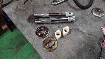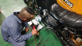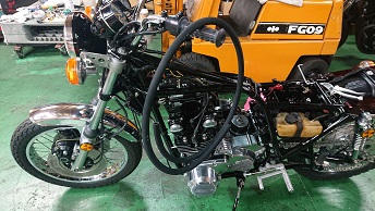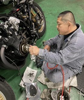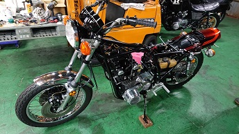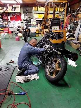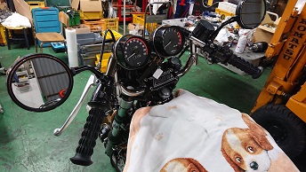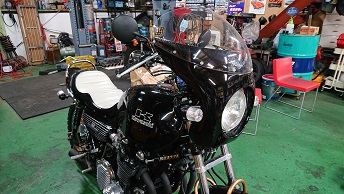 202012/03 今日は勢いよく! メンテナンス・大将商会 0 12月2日(水) 本日も、ドンドンやっていきます! キャブを取り付け、大将オリジナルOCも装着していきます! 苦労して出来上がった、布目ホース! ※今の装着している方々、近日ホース販売させて頂きますので、必要な方ご購入ください。 キャブもOCも装着完了!! ちょっとストーブで焼き芋を焼き、休憩! 今日は珍しく、訪れてくる人がいない。。。。 こんな時こそ、作業に集中することができる!! シートやBSの取り付けもやっておきます! ほぼほぼ出来上がりました! 後は、パーツの入荷を待つのみ!! 勢いづいてるので、連長の単車もやっておきます! 現在付けているLEDのガタがひどく仕方なく交換。。。。 ハンドルも、コンドルプラスから、アップハンドルに! この後カウルを取り付けるため、ウィンカーの位置を変更するのに使うウィンカーステーです! ヤンチャなハンドルですね(笑) さぁーここまでは簡単な作業ですが・・・・ 次は、カウル取り付けていきます。。。。 久しぶりに付けるカウルなので、位置決めに時間かかるわwww こんな感じに出来ました! 納車前に、連長に確認してもらうことにします! 作業こなしているのですが・・・次々をあるので、まだまだ頑張らないと、自分のしたいことが出来んわ・・・・・ [15回]