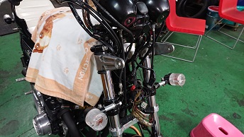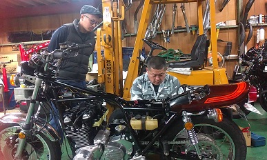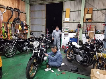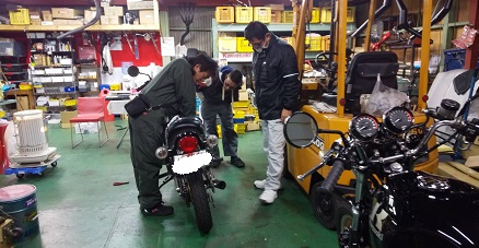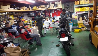 202012/02 本日も朝から・・・! メンテナンス・大将商会 0 11月30日(月) きょう午前中は、脳梗塞で少し身体に障害が残った父親を、運転免許センターの適性検査に連れていきます! まだまだ、頑張ってリハビリしないと、普通には運転できないような感じです・・・・。 頑張れオヤジ! 親父と昼食を終え、時間あるので、Z1000LTDの国内新規登録でも行ってくることにします! 何の問題も無く、すんなり合格!(笑) ん・・・・ まだ時間あるので、連長のZ2も車検しておきます! しかし、ガレージに帰り車両チェックしていると、ライト(LED)の切り代わりの調子が悪い。。。。。 他にも、車検仕様に戻して・・・・取り外してあるライトに、ライトリレーキットを取り付け出発! 再び陸自に! こちらもすんなり合格! 本日、予定していなかった、車検2台で来てよかった! またまた夕方になると・・・人・人・人。。。。 連長の車両をもとの仕様に戻しているのに・・・・ 次々来る来る。。。。 画像にはないですが、ウルフ・乃一も来てました。。。。 車検に持ってきた副長の単車が調子悪そうだ。。。。 バッテリーが急に弱くなったみたい。。。 電圧を計ると10Vぐらい・・・・ お亡くなりになったか? 一応分解してチェックしてみます。 原因がわかりました・・・・・! 早速修理しておきます! 原因がわかったので、副長のご満悦。。。。 あとは、自分でしなさい! 次の順番を待つM社長・・・ しかし、こんなイラン事ばかりしたがる。。。。 これは、連長に叱られますね(笑) この後、M社長のしょうもない修理して本日終了。。。。 また、作業進めれなかった。。。。。 ※先日の答え 後ろ側に、プライベートで来てる連長がいます(笑) [15回]