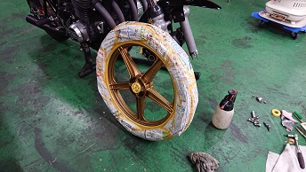 202012/07 どさくさに紛れて・・・・・ メンテナンス・大将商会 0 12月3日(木) 今日はとある事情で、メンバーが集結。。。。。 は、イイのですが、中にはどさくさに紛れてやってくるメンバーも・・・・。 管理人、連長の単車にまたがり格好付けていますが・・・・ 足元が寂しい(笑) どさくさに紛れて来ているのは、この乃一・・・・ 本来の修理は、リアスプロケ・チェーン交換だけだったのに、メーターのインジケーターが調子悪いだとか・・・・・ ホイールを塗りたいとか、マフラーも塗りたいとか、ついでにオイル交換したいとか。。。。。 なかなか大がかりよ!! インジケーターは解消し、残す作業は明日以降! 明日、副長の車検行かないといけないので、車検準備しておきます! 時間が余ったので、乃一のフロントホイールの塗装準備でもしておこうか・・・・・。 ホイールの清掃を終え、マスキング完了です! 明日、朝一番から塗装し、車検に走ります!! [10回]PR