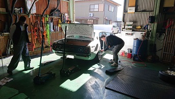 202011/06 ヨンメリ作業開始! メンテナンス・大将商会 0 11月4日(水) 最近、単車に車・・・てんてこ舞い。。。 作業内容は、エンジンを上げ、マフラーも上げ、ボールジョイントやロールセンターアダプター取り付けなどやっていきます! 画像でもわかるように、エンジンメンバーよりオイルパンが低いですよね! これを解消しますよ! マフラーは、中間で釣り上げるために、ステー制作します! マフラー遮熱プレートは必要ないので取り除き、極限までマフラー持ち上げます! 遮熱プレート取ると底周りスッキリです。 ボディーの状態も非常にイイですね! リアのメンバーの錆が多かったので、アンダーコートしておきました。 下準備出来たので、明日、マフラー加工などの段取りして、パーツも入荷してくる予定なので、一気に作業進めるとします! 自分用のハヤシキャストもバッチリです! 細かい作業も後々進めていきます! [14回]PR