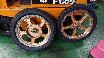 202011/04 本日も、朝からバタバタ・・・ メンテナンス・大将商会 0 11月3日(火) 本日も朝8時20分から・・・・ ガレージの整理をしないと、昼前にヨンメリが入ってくる。。。 作業受付しないと言っていましたが、以前に約束してたのすっかり忘れてて・・・・ 片付けが出来、車を入れるスペース確保!! この後、内燃機屋に副長のZ2を持って行かないといけないので、軽トラに積み込み、その前にハヤシの塗装やっておきます!!! さぁー副長の単車運んできます・・・・。 帰ってきた後、ヨンメリ到着。。。。 現在履いているホイールから太いホイールに交換ですが、フェンダー加工して・・・・このまま入るかな??? 無事に装着です!! 太いホイールの中をゴールドに塗装したいとの事でしたが、フロントが見つかるまでシルバーで行くことに決定!! 太いホイールは現在オレンジに塗装されているので、剥離しシルバーにしないといけない。。。。 追加で、エンジンを上げるのと、マフラーも上げるのと、フロントにロールセンターアタプターの取付やボールジョイントの交換・・・・・する事いっぱい有り過ぎる。。。。 けど、やり出せば簡単に済む作業なんで、ちょっとホッとしていますが(笑) 打ち合わせや雑談を切り上げ、この後、久しぶりの少将の重量挙げの徳島大会観戦に行ってきます! 少将の母校が、かなりスケールアップし新築されている!! 徳島の記録会なので・・・ 本領発揮したのか??わからない。。。 結果、スナッチ140キロ C&J180キロ・・・ 凄いのか、まだまだなのか・・・ここまできたらよくわからんわww 今日は、何も食べずに動きっぱなしだったので、ちょっと外食。。。。 またまたこの食事の後はガレージに戻り、ハヤシにタイヤ組み込み作業・・・・・ ホンマにバタバタした一日だった。。。。 おまけ・・・ 毛のむしった小さなゴリラ(笑) 筋肉に刺激あたえてないから、これでもまだ小さいみたい(笑) 鍛えたらこんな体になるんやな。。。(笑) [16回]