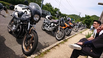 202106/07 空いた時間に急遽! メンテナンス・大将商会 0 6月6日(日) ちょっと作業も一段落! 時間が空き急遽メンバーへ連絡!! 行ける人たちだけでちょっとツーリング行ってきました。 連長待ち~ まずは、鳴門スカイラインへ! 走ってる割に、単車か少なかったような。。。 鳴門から、香川の大川オアシスへ!! 昔はよく来てたけど、最近来てなかったわ! 帰りは白鳥越えの土成へ! 団子屋さんで団子買おうと思っていますがどの団子に??? 迷ってる・・・・。 こしあんの焼き団子決定! 旨かったわ!! 帰りに私のガレージにより、連長のZ2に付けてあるカウルに興味津々のN岡君。。。。 連長からお借りできたようです!(笑) 約100キロのツーリングでしたが、なんかスッキリしたわ! みんなは帰り、私は、ちょっとKZ900のメーター組んで帰ることにします! 綺麗に出来上がりました!! [18回]