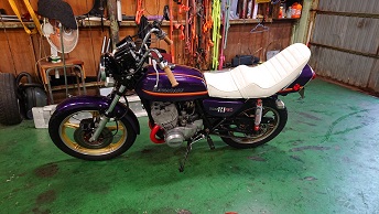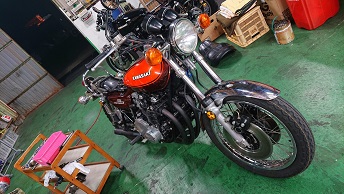 202010/19 新たな車両のお迎えに!! メンテナンス・大将商会 0 10月17日(土) この度、私は生涯無いと思われていた2ストを・・・・ 横浜より嫁いでくることになりました! で、取引は、間を取って、愛知県の伊勢湾岸道名港中央に決定! では、お迎えに行ってきます!! しかし・・・雨。。。 途中、鈴鹿のサービスエリアで!!! 本物です! 目的地到着です!! 取引するのは、横浜ヘルズの金〇さんです!! 探してた時に、ナイスタイミングのお話!! ちょっとヤンチャ仕様ですが、エンジンのキッチリ手を入れてあるようなので安心です! 久し振りにお会いしましたが、変わらないね!!(笑) この度は、ありがとうございました。 無事に、ガレージの持って帰ることが出来ました。 色んなパーツ付いていますが、私のしたい仕様とは、ちょっと違うので、後々進めていくことにします! 当時、世界最速2スト!カワサキSS750(H2)!! うっかりしてて、今晩ちょっとお誘いがあり・・・ 疲れてはいますが、支度して・・・・。 明日も朝早いのに・・・・起きれるかな。。。。 [17回]
