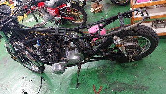 202010/22 次々順番待ち車両こなしていきます。。。 メンテナンス・大将商会 0 10月21日(水) 順番待ちしてくれていた、Z2RS入庫! オーナーKさんと打ち合わせし、このままの状態で‼とも考えましたが、フレーム補強が、何箇所か入っているのが気に入らないという事なので・・・ フレーム補強を取り、1から仕上げることに! 早速、全バラ開始!! なかなかイイ感じになってるのがもったいないのに・・・・ 補強が、サイドカバーの下側にあるのと、この画像にあるもの。。。。 なかなか取るの手強そうなところじゃ。。。。 もぉーエンジン積み下ろし作業続いているので、腰が・・・・ 片付けして・・・ 明日から、フレームの加工するか、エンジンするか考えながら作業進めていきます! 早く、なんちゃってホーク片付けないと。。。。 [14回]PR