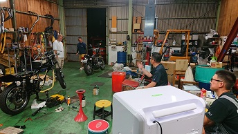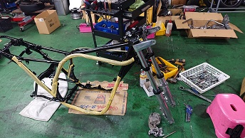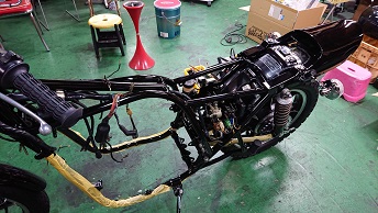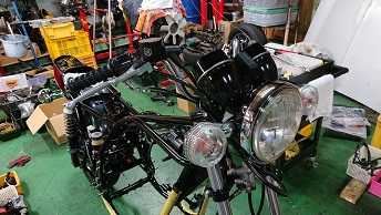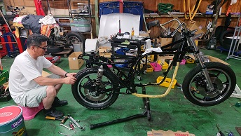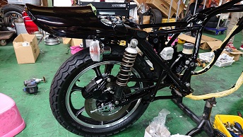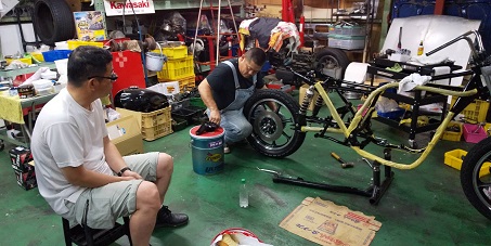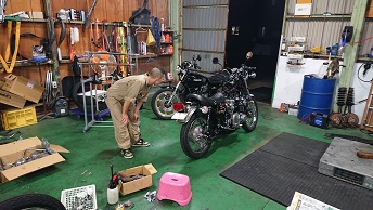 202009/11 早速、届いたので! メンテナンス・大将商会 0 9月10日(木) パウダーコーティングさんの計らいで、早くして頂き感謝しています! 早速、KZ車両少しづつパーツ取付けていきます! その前に、Z1の点火時期合わせエンジン始動確認しておきます! カバナの種類に迷わされましたが、正規な物に取り替え元気よくエンジン始動しました。 さぁーKZにかかります!! すると、直幸がZ2で登場!! 乗りやすいと絶賛!! 私は、いつもの監督のもと・・・・・ 作業続けます!! 作業しているみたいですが、見ているだけです・・・・。 MK2の足回り〜 なかなかシックリ来てますわ!! また続きは明日!! [14回]