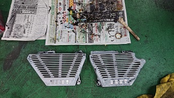 202009/14 細かい作業が・・・ メンテナンス・大将商会 0 9月12日(土) KZのフロントブレーキのエアー抜きやっておきます! エアー抜き完了! さぁー続いて疲れる作業が待ってる。。。。 サイドカバーは、BEETのアルフィンを装着予定なので、仕上げる準備しておきます! リバーを2回・・・・ ほぼ綺麗に剥離できましたが、細かいところは手作業で。。。。 勢いにのり、マスキング作業まで頑張ってやっておきます! あ~疲れた。。。。 明日の朝より塗装するとしますか! [12回]PR