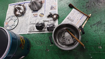 202106/03 ハードな一日。。。 メンテナンス・大将商会 0 6月2日(水) 本日朝より、オヤジの定期検査で病院へ連れていき。。。。。 今日は、健診も早かったので、やり残していたハーレーの車検もやっておきます。 この後、淡路に用事で3件ほど回り、帰ってきて作業するのか??? さすがにちょっと疲れたので休もうかと思いますが、ちょっとでも進めないと終わりが見えない。。。。 なので、剥離作業だけ? が、マスキング作業も?? こちらのディスクは、KZ900の物になります。。。 ついでにメーターも??? あ~疲れた。。。。 癒しが欲しい。。。。。 まだまだ剥離作業やブラスト作業のパーツがゴロゴロ・・・・ あ~~~! [16回]