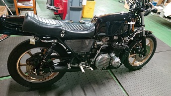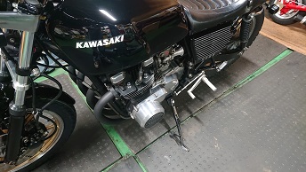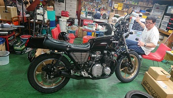 202008/31 本日、Z2~ 3台車検!! メンテナンス・大将商会 0 8月28日(金) やはり、日中はカンカン照りで暑い。。。。 陸自到着!! Z2が3台・・・高級車並みの金額になるよね!!! ん~貸し切り状態!!(笑) 何の問題も無く、合格です!! しかし暑い・・・・・ 毛穴から汗噴出してるわ。。。。。。 さぁー帰って、単車下ろして、作業しておきます! 昨日の続き、腰下組込、塗装を後にするので、ブラスト用のカバーを取り付けていきます! 三角フェンダーも、昨日塗装してあったので、表面を研ぎ、仕上げておきました! 直幸Z2に装着です! [14回]