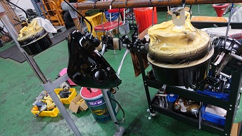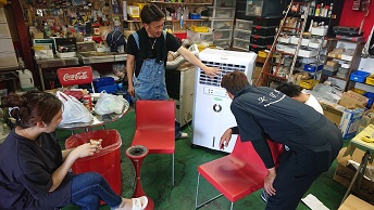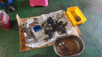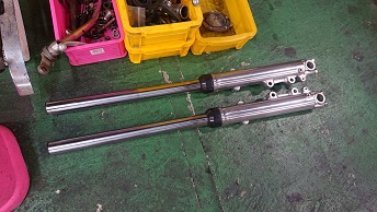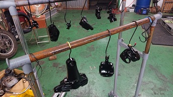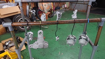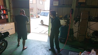 202008/31 本日もバタバタ・・・・ メンテナンス・大将商会 0 8月30日(日) 本日は、10時より作業開始! KZパーツの小物を塗装する準備をしておきますが、これがまた手間かかるんです。。。 パーツの分解・清掃しながら・・・・ すると、突然高知の潤君登場!! 何だか、徳島に用事があったみたいで!! 噂の冷風機を見て・・・・・・ すると、香川より、まぁー君・ケンケンも登場!! まぁー君のZの検査しないといけないけど・・・・暑い・・・。 暑いな〜の会話ばかり(笑) すると、潤君の相棒が氷を買ってきてくれ、冷風機に入れて冷たい風が出るか試そうと言いだし、氷を投入!! M社長に勧められた冷風機・・・・まだまだ話題が途切れないでしょうね。。。。 だって、自分も会社に同じものを買った!って言っていたのに自分は返品したみたいです。。。。 ありえないでしょ。。。。。 しかし、氷を入れると、冷たい風が出てくるの感じる!!! けど、毎回氷なんか買って入れれないし。。。。 さぁーまぁー君のZ見てみましょうか! ちょっとしたことで、解決!! 大事に至らず良かったね!! そして夕方みんなが帰り、私は分解したパーツを剥離作業しておきます! その合間に、フロントフォークを組みます! こちらのパーツも洗浄し、使える物の振り分けもしないと。。。。。 そして、日が暮れ、ブラスト作業!!! 暗くなる方が、キャビネットの中が見やすいんだよね! ブラスト終了!! 本日も、作業終了時間10時過ぎ・・・・疲れた。。。 [19回]
