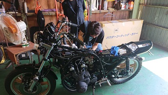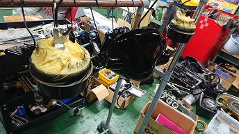 202009/04 祝)直幸納車 メンテナンス・大将商会 0 8月31日(月) 昨日、ブラストしたパーツに色入れ! この後、直幸の納車が待っている!! フェンダーの取替、準備万端! 無事に納車です!! 自分の息子のような直幸ですが・・・・ 事故せんように祈るわwww [16回]