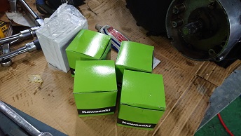 202008/03 暑さ半端ないわwww メンテナンス・大将商会 0 8月2日(日) 本日も朝より、昨日持って帰ってきたGTRのパーツをトラックより下ろし・・・・ 汗の拭きだし止まらん・・・・・ 後輩に借りていたトラックなので、高速走った時に付いた虫など洗車しておきましたが・・・・ 暑すぎ・・・・ 画像も無い・・・・・ ついでに自家用プリウスも洗車し・・・・・ 汗止まらん。。。。 少し身体をスポットクーラーで冷やし休め・・・・ 直幸のZ2エンジン進めていきます! バラバラになってるパーツを集め。。。。 汗が噴き出てくる・・・ カワサキ純正オーバーサイズピストンで組みます!! スリーブの状態が悪く、私の在庫で持っていたスリーブを使いボーリング!面研も完了!! 組み上がれば、塗装するので、ブラスト用のカバーも同時に取り付けていきます!! ヘッドは、明日出来上がる予定なので、シリンダーにピストンだけ潜らせこのままにしておきます!! 今日は、間違いなく痩せてるような気がします!(笑) [17回]