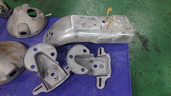 202007/28 雨・・・よく降るね。。。 メンテナンス・大将商会 0 7月27日(月) 直幸のZ2に装着するリアフェンダーの加工と、テールランプステーの台も加工出来たので、ブラスト処理しておきました! テールランプステーは、ナンバーの角度を変えたので、明日にでも溶接してきます! 雨降りすぎで、ブラスト当てて、シリコンオフ掛け洗浄して数分・・・・ 早くも赤くなってきたわ‥‥塗装前には、手磨きしますが。。。 後2・3日で梅雨明けか? カラッと晴れて欲しいね!! またまた1位・・・・ これまたプレッシャーです。。。。 [24回]