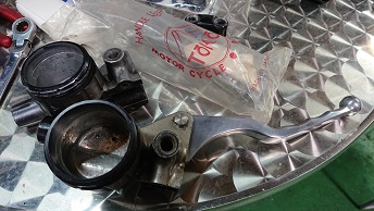 202007/29 徐々に進めて! メンテナンス・大将商会 0 7月28日(火) W仕様の純正マスター! 直幸にも純正マスター装着します!! インナーを組み込み、レバーは、パワーレバー装着! エアー抜きも完了!! これで、前周り完成!! テールランプステーを溶接し、下処理をして、色入れていきます!! 徐々に進んでいっています!! 他にも、Z1のフォークのOHや、勿論シャリーも・・・ 部品が揃ったので、徐々に進めていきます! [18回]