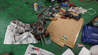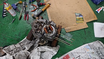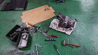 202007/27 ツーリングだったのに。。。。 メンテナンス・大将商会 0 7月26日(日) 本来ツーリングだったのに・・・・ 雨の予報。。。 行先の高知も雨。。。。 中止にしないと仕方ない・・・。 時間空いたので、本日も直幸に付き合う事に! スイングアームを取り換え、私が仕上げていたKONI(76P-1343)を装着! スイングアームのブッシュ抜くのに苦労しました。。。。 直幸嬉しそうに付けてるわ。。。。 リア周りも一生懸命磨きなさいよ!! 私は、フロント周り仕上げていきます! まずが、キャリパー左右のOH! 装着です! 少しづつですが、形になっていっています! [16回]PR