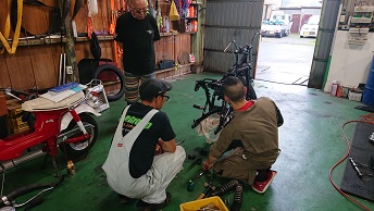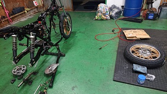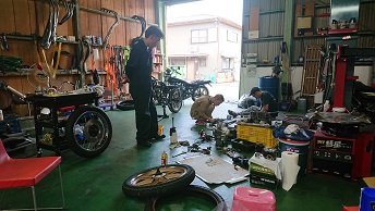 202007/27 本日のガレージも賑わっています! メンテナンス・大将商会 0 7月25日(土) 土曜の癒しは2割… で、ガレージにて作業開始!! 午前中にタイヤを取りに行き、ガレージに帰ってくると、香川からまぁー君&ケンケンが来ているじゃないか!! 本日も、直幸Z2を触ります! 直幸&西岡君は、磨きに専念!! 私はタイヤ交換を終え、在庫で仕上げるZ1のスポークホイール磨いておきます! なかなか綺麗ですよ!! TAKASAGOリムもバリバリ綺麗!! 雨が降りそうなので、M&K退散! M社長・・・所かまわず・・・・すやすやzzzz ※お詫び 明日は、大将と楽しく走ろうツーリング・・・・ 天気が悪いため、泣く泣くの中止。。。 皆さんごめん…私たちが計画すると何故か…雨なんです。 また、引き続き計画立てますので、時間合う方は参加してみてください!! [15回]
