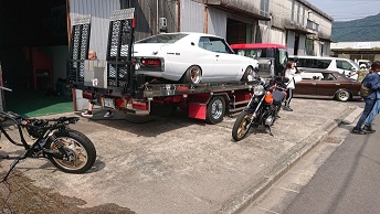 202007/27 日曜日になると・・・・ メンテナンス・大将商会 0 7月19日(日) 昨日フル充電して~ きょうも頑張っていきます!! が・・・・ 日曜日になるとドンドン集まってくる。。。。。 ツーリングに備えてメンテするメンバーに・・・ 新たに手にしたZ2を触るメンバーに。。。。 私は、いよいよ納車するブタケツの積込をして!! このシルエットがたまらんわ!! 修理できた、ジャイロXの積込もして納車準備万端! すると、来るわ来るわ・・・・ 何をするわけでもなく・・・ 夕方に、ジャイロXの納車を約束していたので、それまでに解散してもらい。。。 帰りに、初めて行くラーメン屋さんで! なかなかイケる!!! ちょっと気に入ったぞ!! [14回]PR