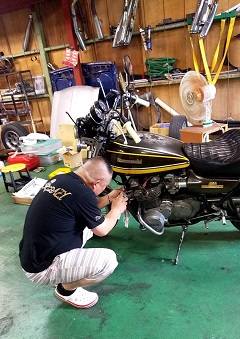 202007/03 本日車検2台! メンテナンス・大将商会 3 7月2日(木) 本日、車検2台。。。 ライトを交換した、エブリィーランディーとZ400FX!! まずエブリィーは問題無く合格!! Z400FXは・・・・ やはり、ライトが駄目だった。。。。 が、リレーをかませて、合格!! これで納車できるけど、やっぱり気になるところがあり、部品を交換しておくことにします! カムチェーンの音が出始めているので、マニュアルテンショナーに交換しました! このテンショナー、良く出来てるわ!! これで、取りあえず問題無く納車できるでしょ!! [16回]