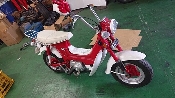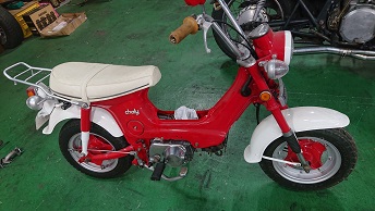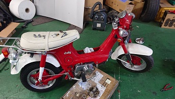 202006/10 近所の後輩のシャリー!! メンテナンス・大将商会 0 6月8日(月) 少し前から預かっていたシャリー! 慌てないとの事ですが、手が空いたので作業進めます! 長年放置してあったシャリーですが、クラッチ付きのエンジンにしたいという依頼! ですが、出来るだけノーマル風にという事で、キャブはもちろんスライドアクセル使用のそのまま使いたいとか‥‥ だとしたら、シャリーは、クラッチホルダーが無いので、初期ダックスのハンドルを探さないと! 勿論・・・・クラッチ付きのエンジンも! エンジンは、私がストックしてあった、レギュラーヘッドの〇8ccエンジン! 原付にあるあるのこの状態になったキャブ!!! カバー類も磨き綺麗になったわ! スプロケも交換し装着! 走ってみないとわからないけど。。。。。(笑) 消耗部品を注文して、どんどん進めていきます!! [10回]